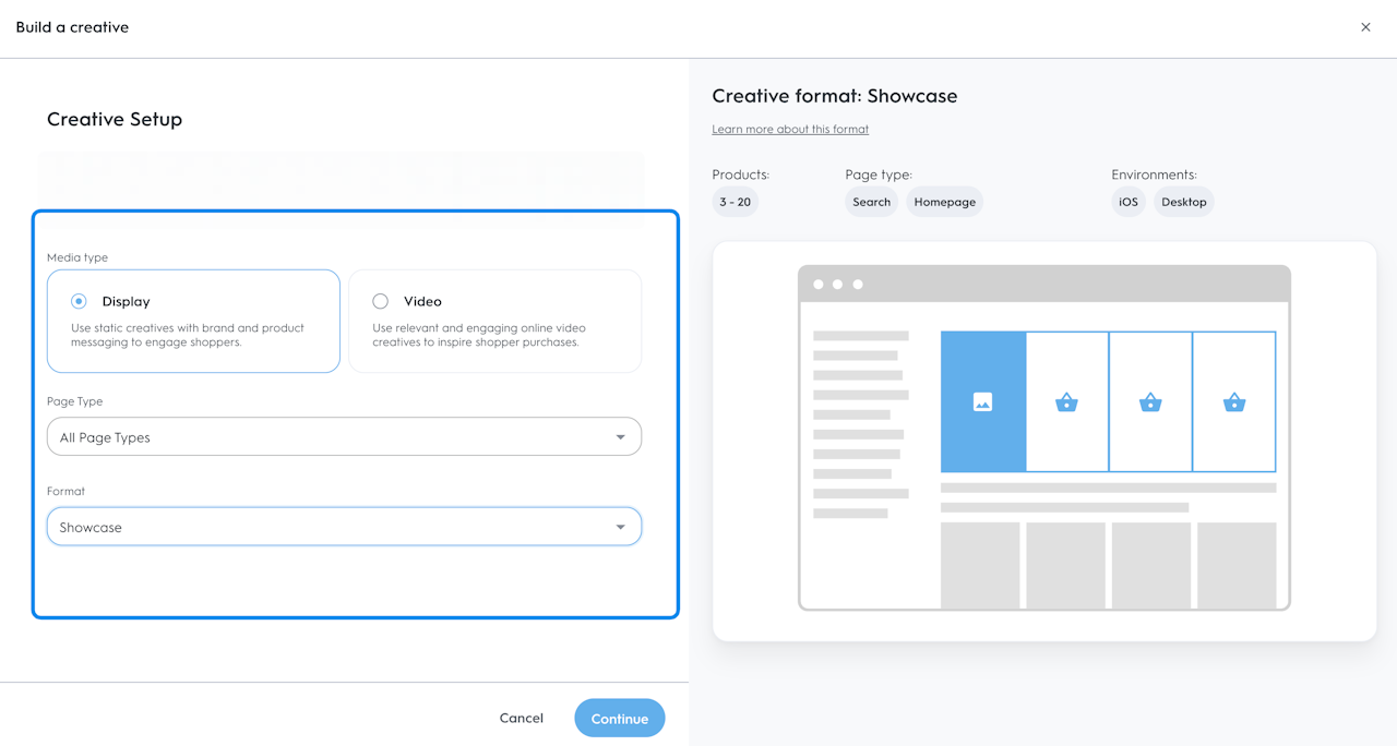 Pick the media type: Display or Video.