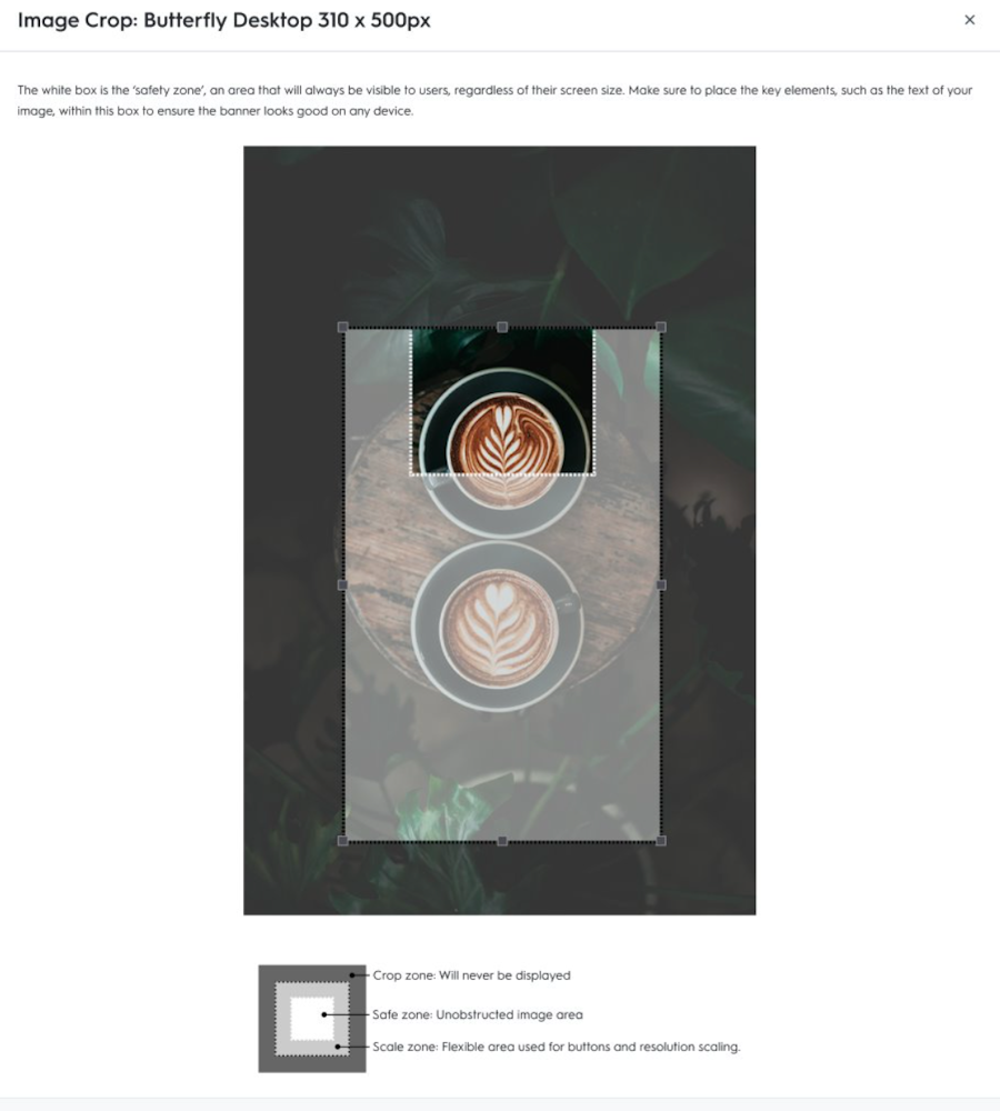 When building a creative, you'll now see a popup window that allows you to customize the safe zone of your image.