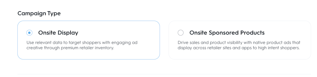 On the Create Campaign page, choose the Campaign Type to be Onsite Display.