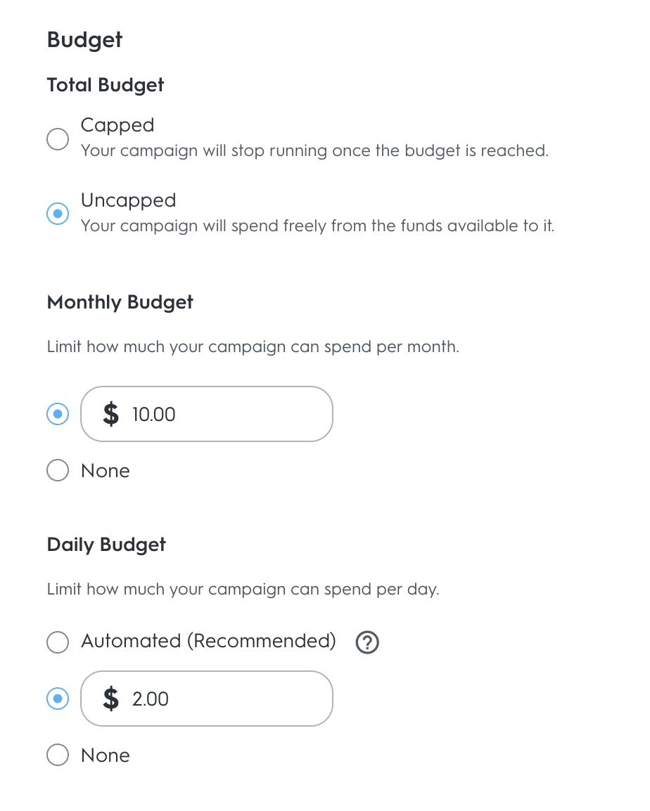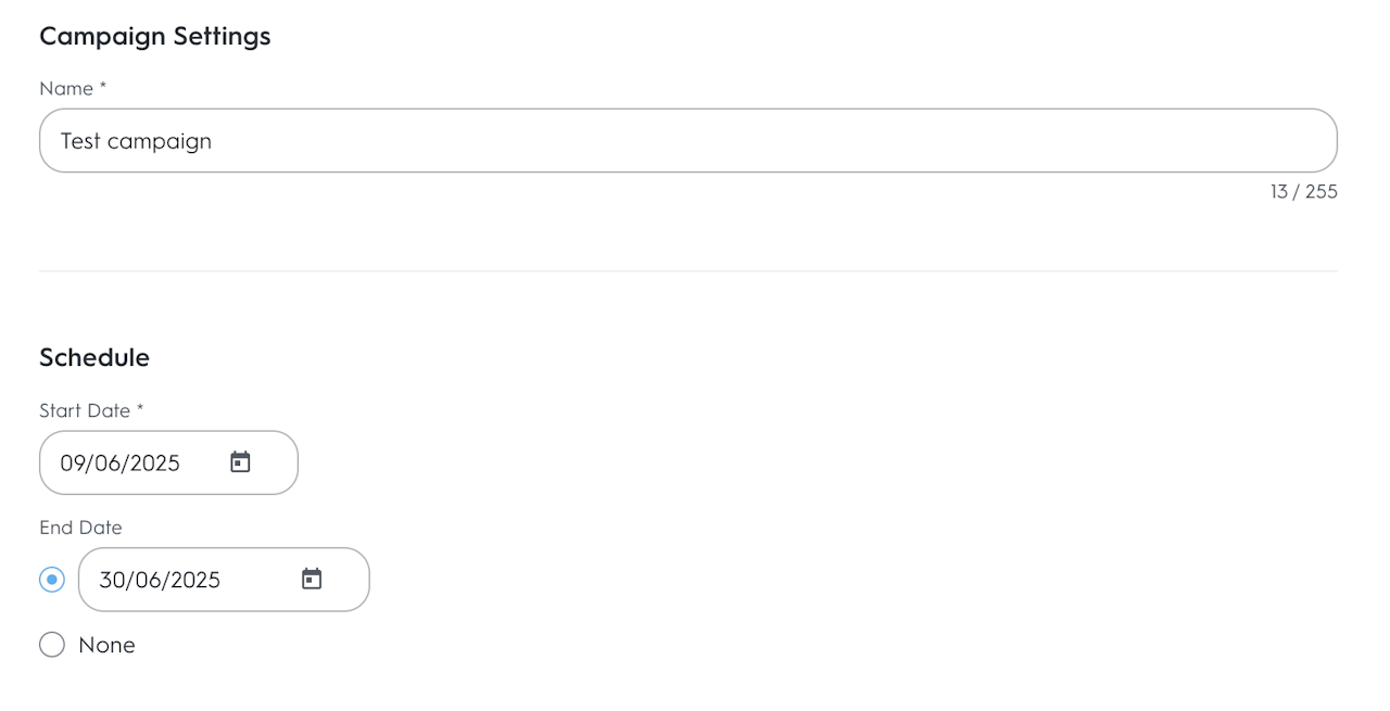 Set the schedule for your campaign, that is, when you want the campaign to start and stop (end date is optional).