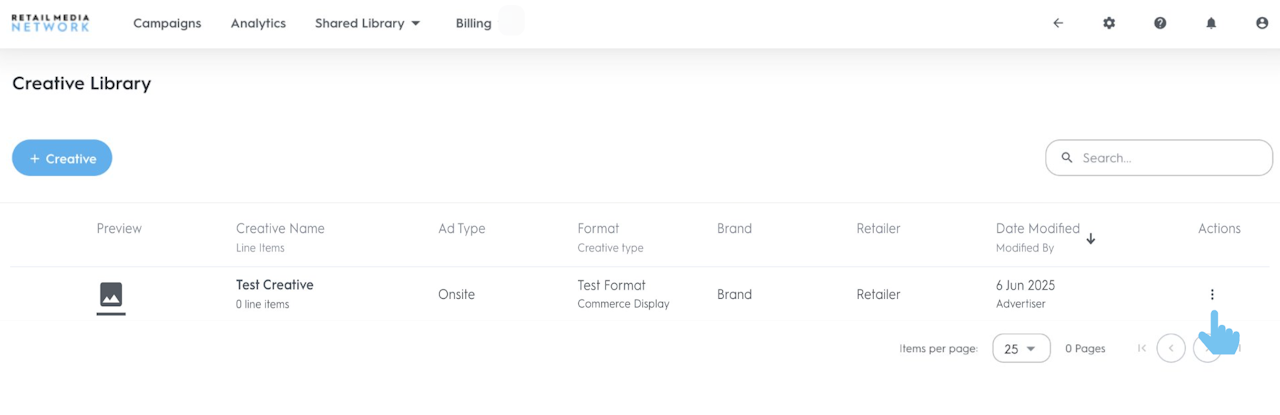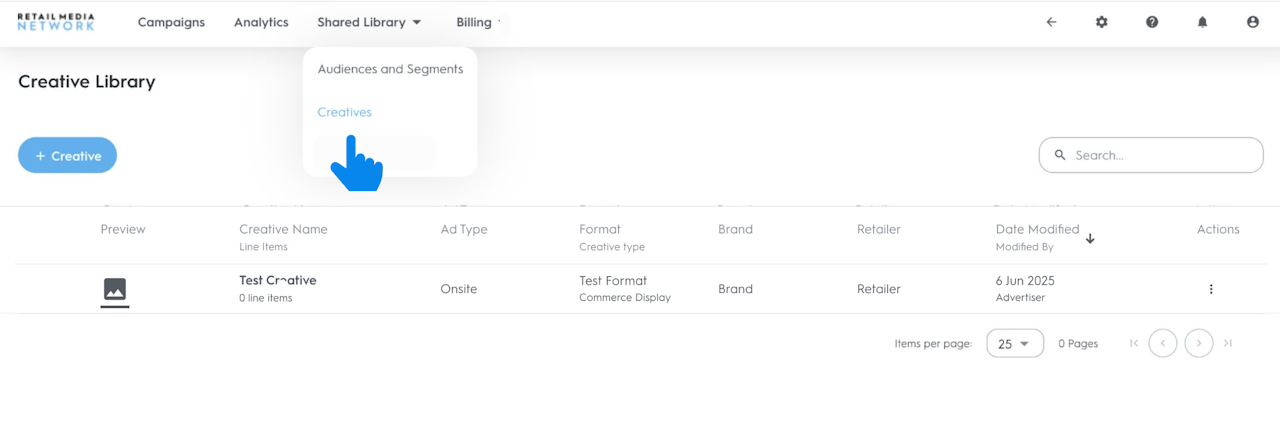You can create and manage all your creatives in the Creative Library. To access the Creative Library: