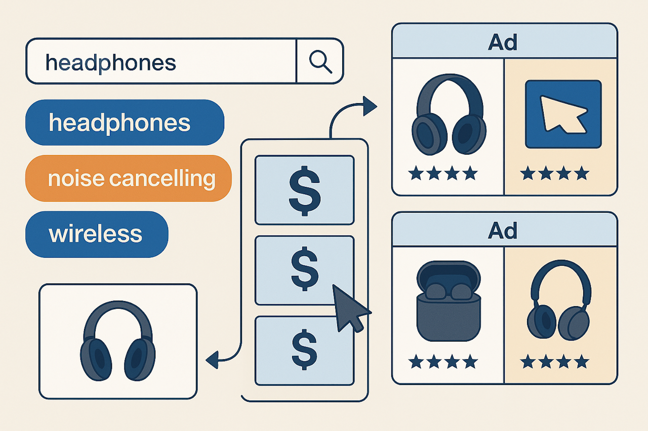 Keyword targeting is a way to show your ads to people based on the words or phrases they search for. You choose specific keywords (like “running shoes” or “organic shampoo”), and your ads will appear when shoppers search for those terms on a website or app.